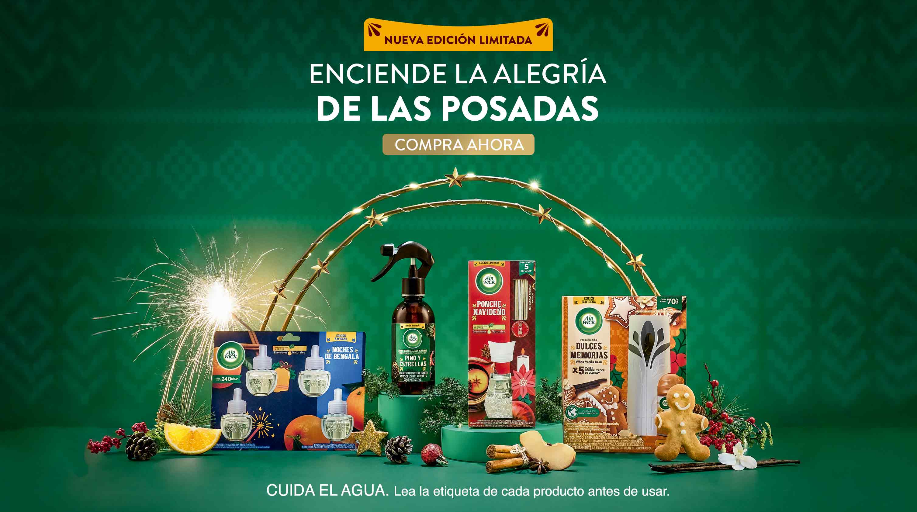 Este año, deja que Air Wick® sea parte de tu historia navideña y enciende la alegría de las posadas como nunca antes. ¡Conoce todas nuestras fragancias de temporada y elige tu favorita!