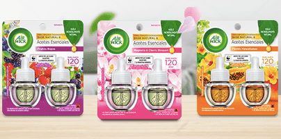 Además, recuerda que la fórmula de los aromatizantes de ambiente continuo de Air Wick® está enriquecida con ingredientes de base natural y aceites esenciales.